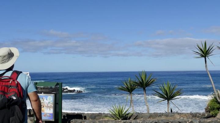 Auf den Plakaten in St. Cruz steht, wenn man auf Teneriffa ist, muss man auf dem Teide und im Loro-Park gewesen sein. Das stimmt bestimmt – sonst würde es ja nicht auf den Plakaten stehen. Wir laufen ein paar Minuten zum Intercambiador (Busbahnhof) und suchen den richtigen Bus nach „Puerto de la Cruz“ an der NW-Küste. Von dem Busbahnhof dort kann man in ein paar Minuten entlang am schwarzen Strand zum Park laufen.