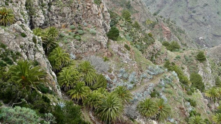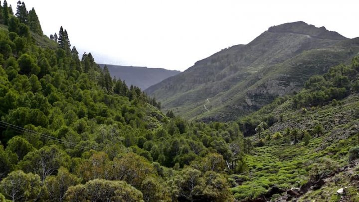 Unser Auto quält sich den Berg wieder hoch. Wir versuchen jetzt mal eine Nebenstraße über Chipude und El Cercado nach Las Hayas. Es wird immer verrückter und immer hübscher und grüner. Atemberaubende Landschaften mit tollen Bäumen und Felsen und wahnsinnigen Aussichten (s. Fotos). Einmal können wir sogar die Berggipfel von La Palma sehen.